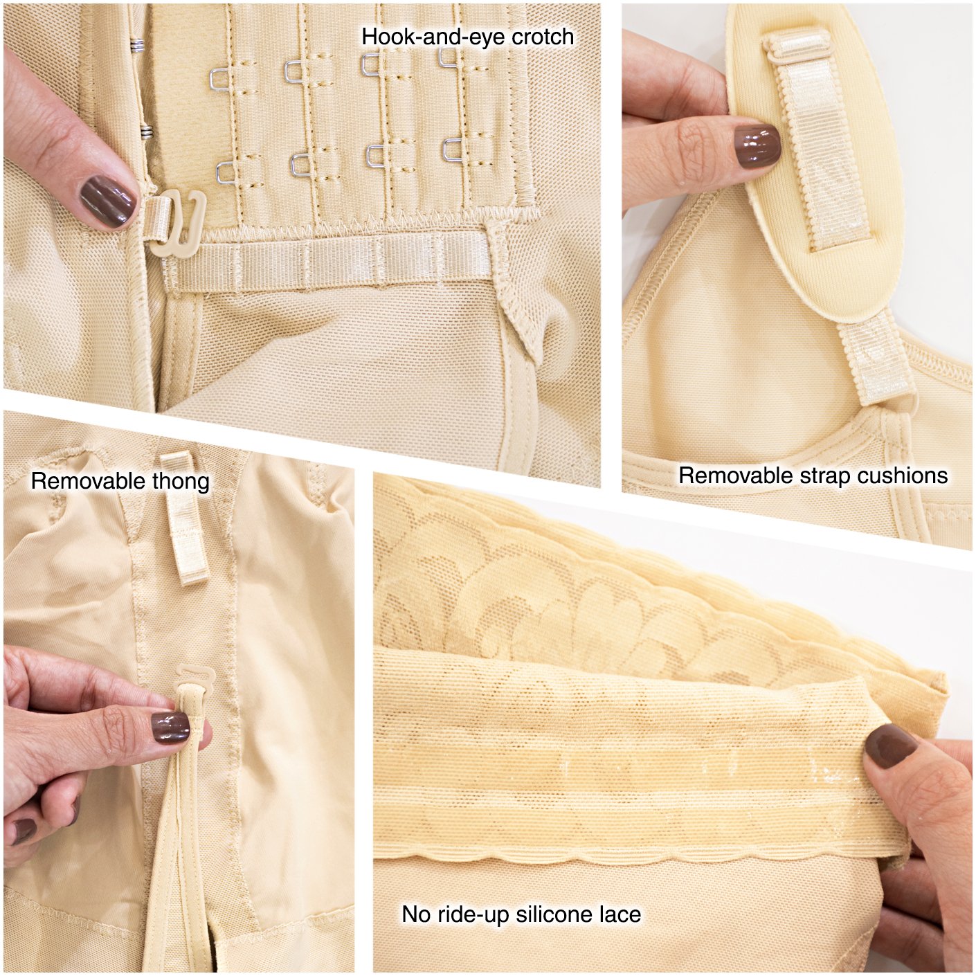 - Moldea y controla el abdomen, las caderas, las piernas y los glúteos.